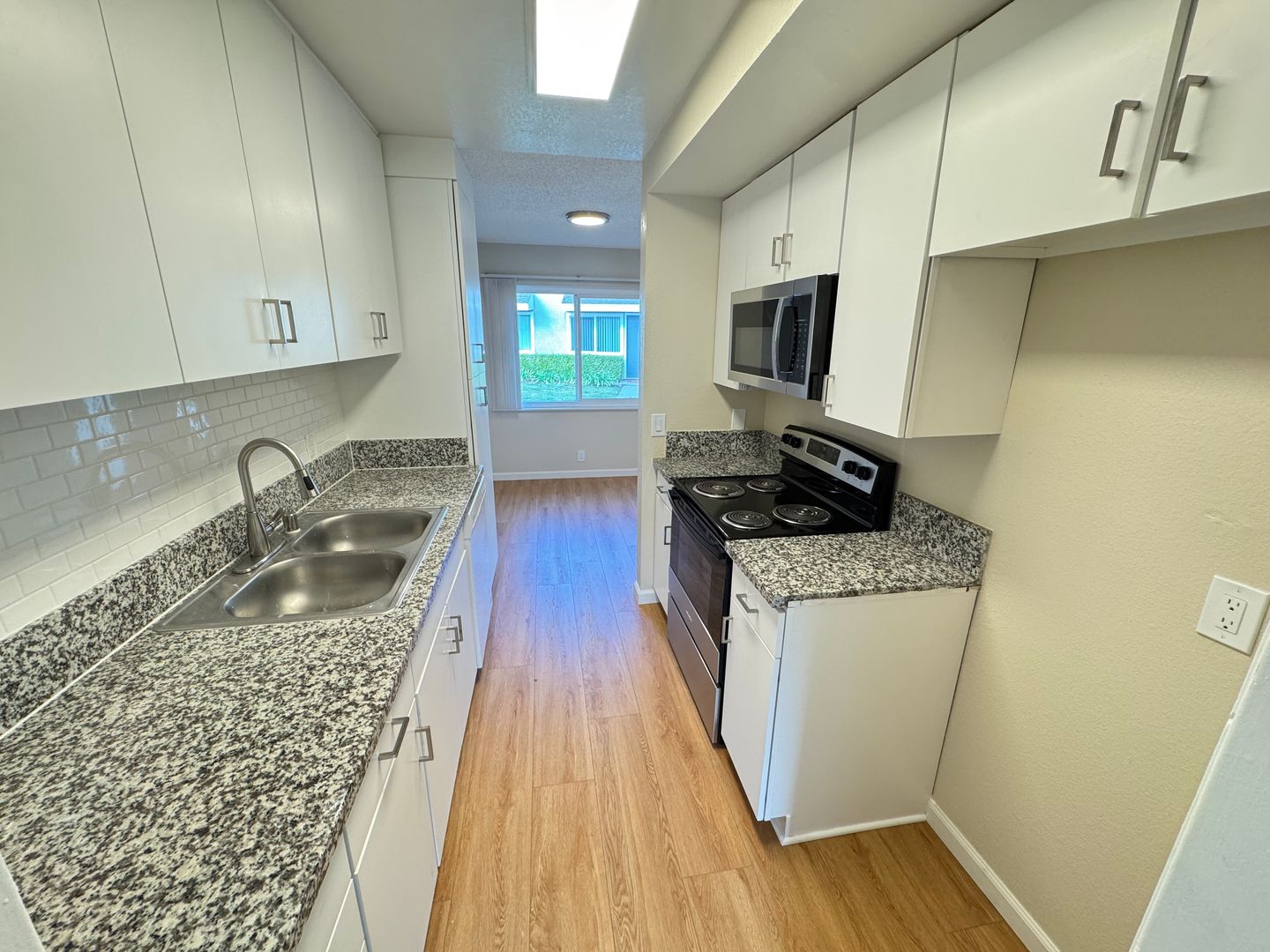 Two Bedroom, one & half bathroom Town home in Open-space Community. Enjoy the community Swimming Pool, a hike in nearby Fairview Park or a quick bike ride to the Beach. Interior features include Quartz/Granite Countertops, Plank flooring throughout, Private Backyard, TWO-Car parking which includes a Single-car Garage PLUS an additional assigned parking stall. Community laundry: 3 facilities for 24 units for plenty of availability. Additional parking stalls for a 3rd vehicle are available for rent.
